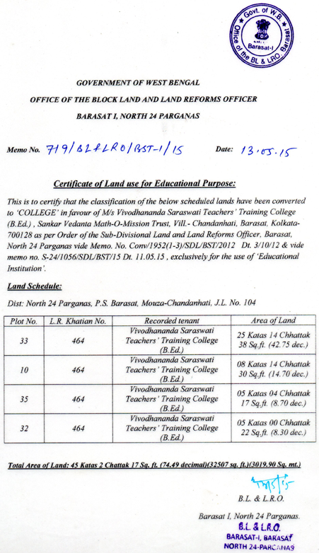 Certificate Of Land Use For Edu Purpose